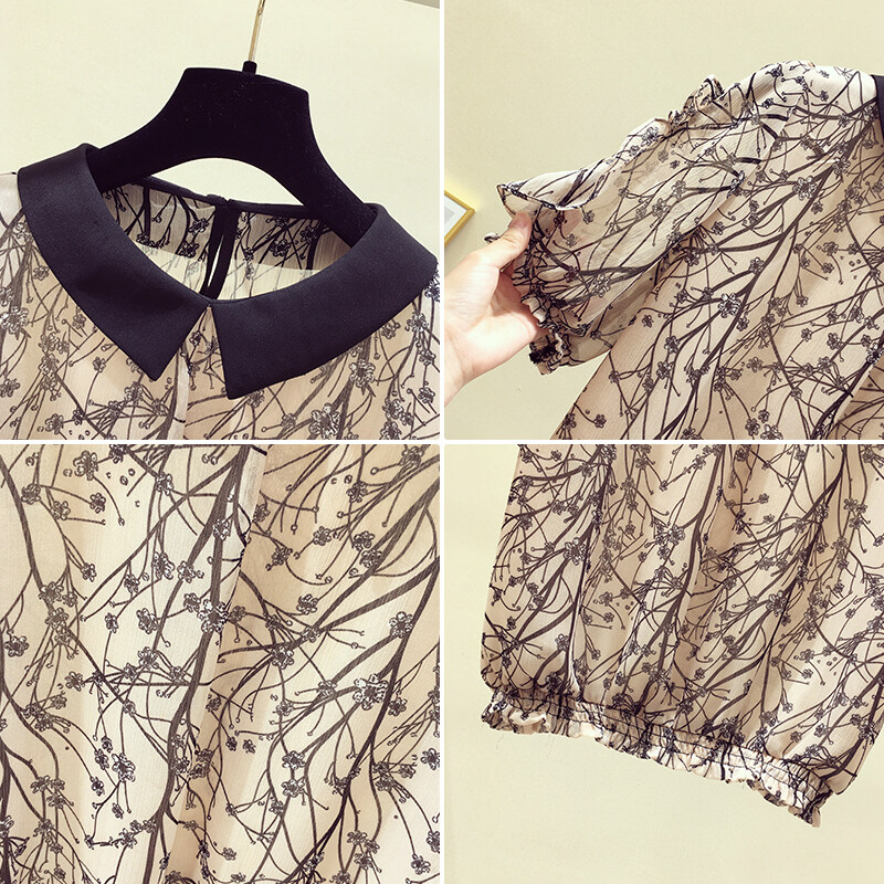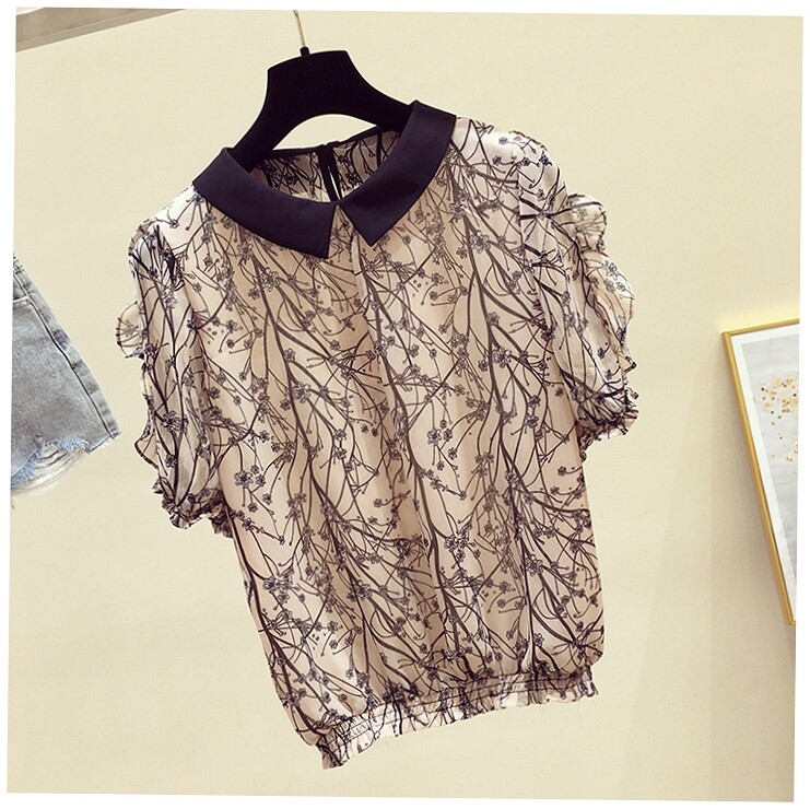 AFEG new Korean style women's short-sleeved floral blouse for women