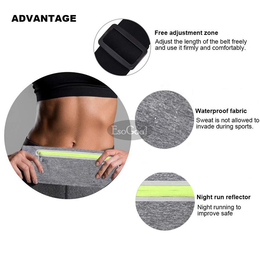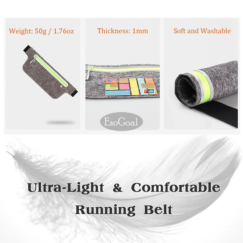 EsoGoal Slim Running Belt Waist Pack, Water Resistant Runners Belt Fanny Pack with Zipper Ultra Light Bounce Free Waist Pouch Fitness Workout Belt Sport Waist Pack Exercise Waist Bag – Suitable for Hi