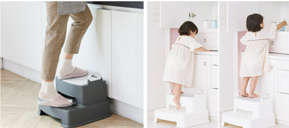 [iFam] Herringbone Baby Step Stool (2 Colors) ● Detachable Two Steps iFam Bath Bathroom Baby Safety ● Baby Toilet ● Height Adjustable Anti-slip Steps for Sink ● Potty Training ● Toddler Stackable Step