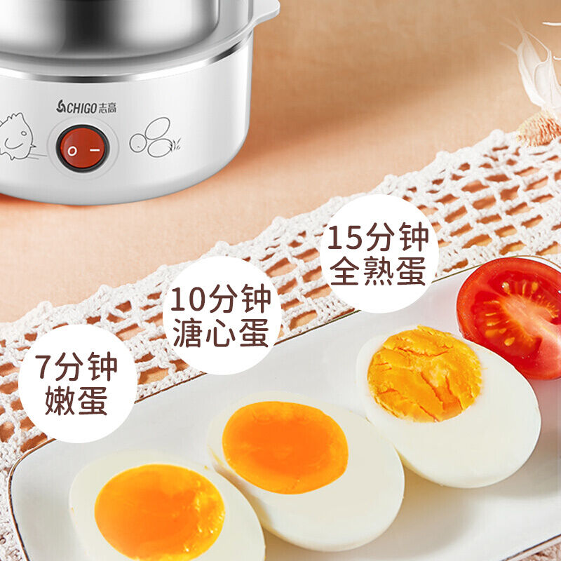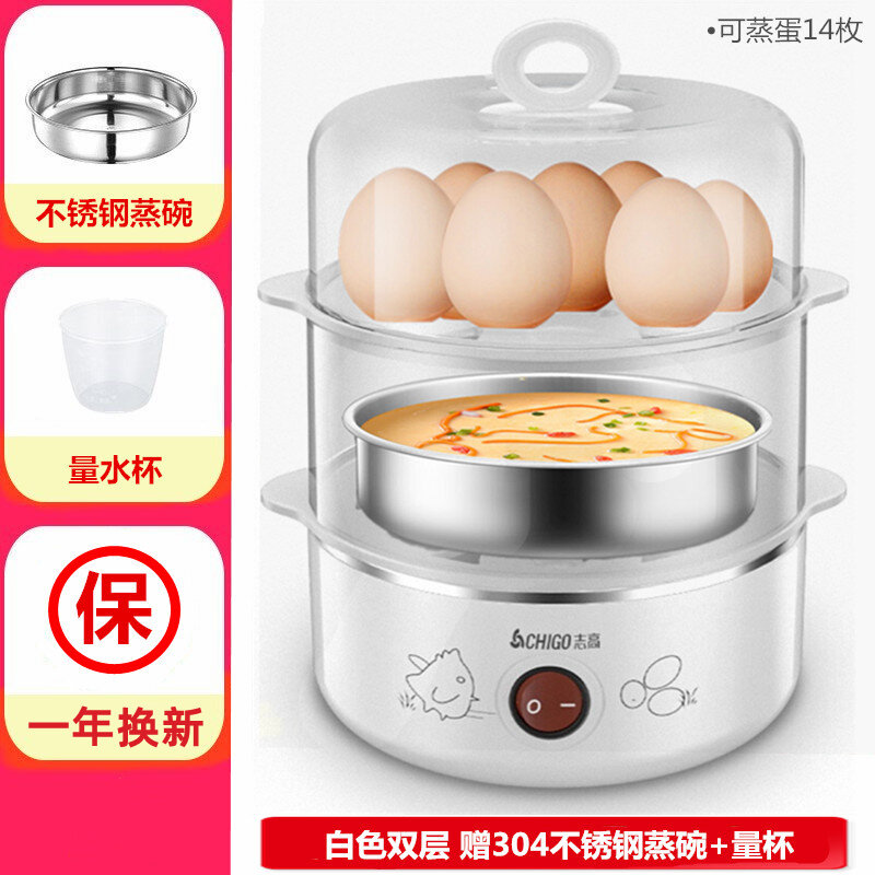 Chigo Egg Steamer Household Single Double Layer Three Egg Boiler Semi-automatic Power off 304 Stainless Steel Breakfast Machine Multi-Function