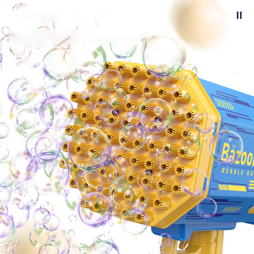 Features:--Abundant Accessories: Bubble Machine x 1, Bubble Liquid x 2, Battery x1, Charger x1, Tray x 1. Easy to clean and won't stick to your hands.--New Upgraded 69 Holes Design: The bubble machine has 69 bubble holes and can blow 2000+ colorful bubbles per minute. It is equipped with four colorful lights, which bring you amazing effects, no matter day or night, press the button, you can see the rich colorful bubbles being blown out, the fantastic lights render colorful bubbles, you can play in the Enjoy colorful scenes at night.--Most Popular Rocket Bubble Machine: Bubble machine is very popular among parents, kids and their followers. As a must-have tool for dates, birthday parties, stages, weddings, Christmas and more. It's the perfect prop for photos.--High-quality anti-drop material: The bubble machine is made of high-quality ABS material, with rechargeable battery, environmentally friendly, durable, safe to use, no sharp edges, thickened shell and anti-drop, so children can play with more peace of mind, very Perfect for kids to play and entertain as well as grown-up.--Eco-friendly material: Bubble machine made of ABS plastic material, safe, durable, lightweight and leak-free. Meets American toy standards. Security tested. Comes with a rechargeable 2200mAh battery, the foam is sustainable and eco-friendly! Remove the bubble head and turn it into a small fan, bringing cool and comfortable wind.--Ideal Gift: The Bubble Machine is an ideal gift for kids on any occasion. Such as bubble themed parties, entertainment, camping trips, beaches, birthday parties, carnivals, weddings, baby showers, halloween, BBQ, Christmas and many more.