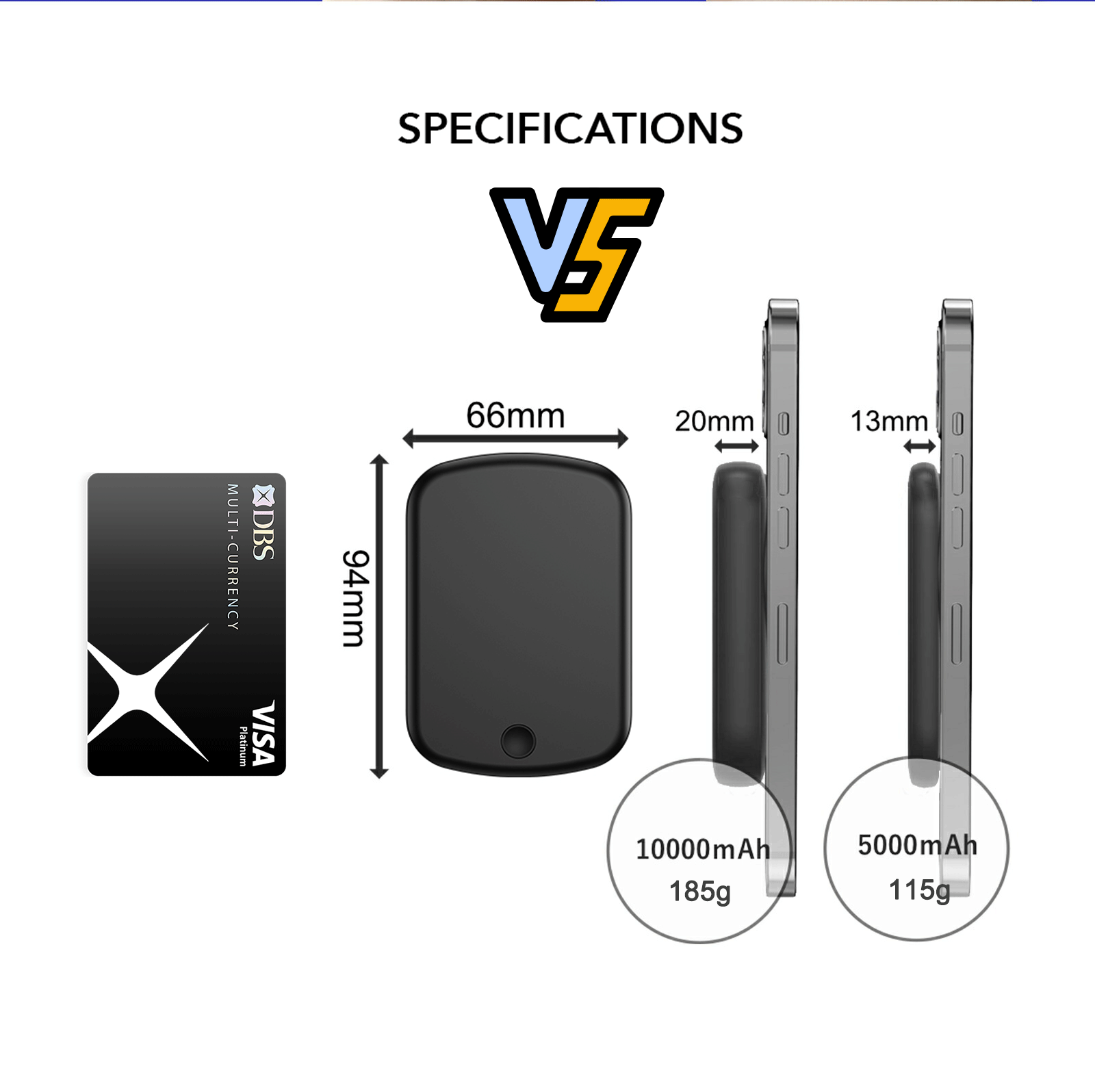 Size: 94*66*13mm(5000mAh) || 94*66*20mm(10000mAh)