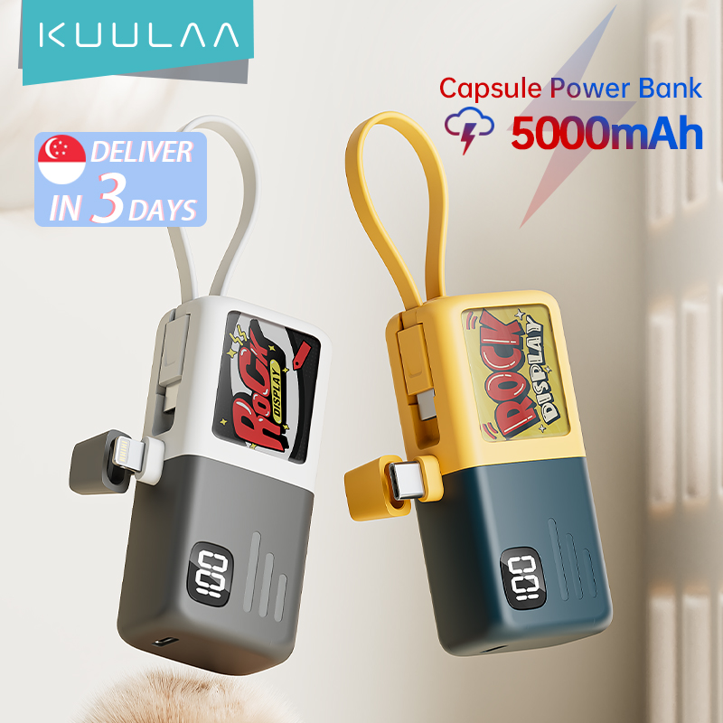 KUULAA 5000mAh PowerBank Portable Charger Power Bank Built-in Type-C Charging With LED Display Compatible For iPhone 15 14 Promax 、Sansung Huawei Xiaomi and more