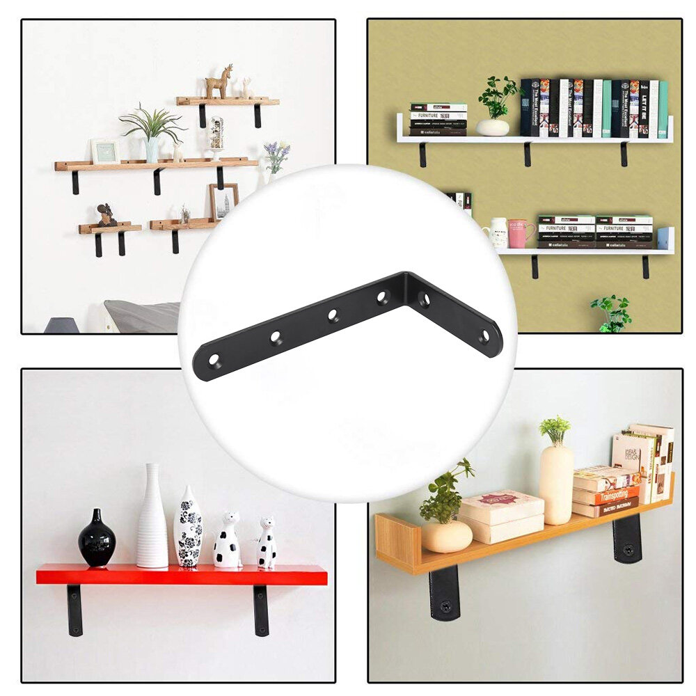 4Pcs Right Angle Shelf Bracket Stainless Steel 90 Degree Support Heavy Duty Cast Iron Wall Mounted L Shaped for Commodity Furniture Fitting