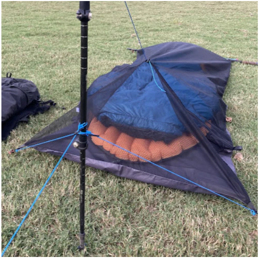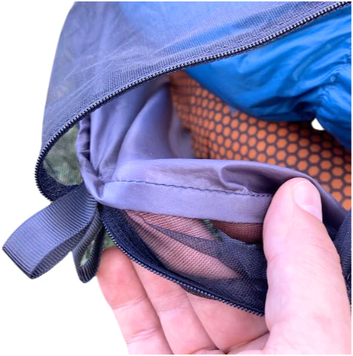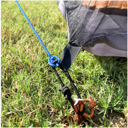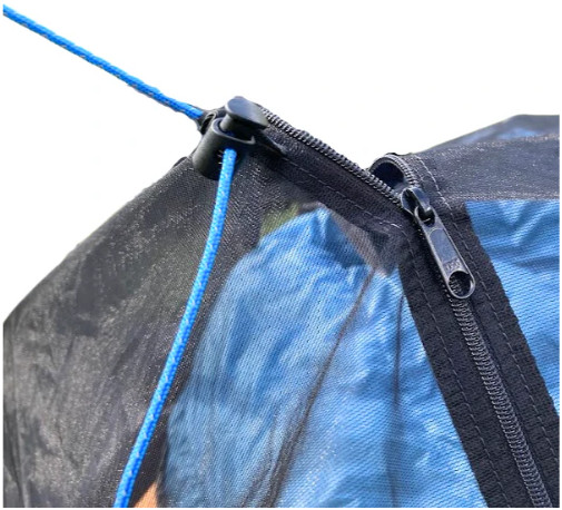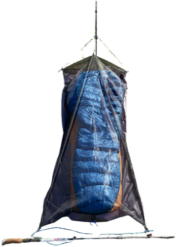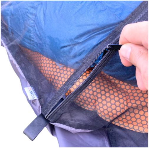 The Brisa Bivy is designed to clip onto the built-in tethers of your ANDA tarp to secure your sleeping system in windy or wet weather. In clear weather, the Brisa Bivy can be used on its own. Secure the Brisa Bivy with the shock cords attached to the corner tethers to prevent your UL pillow from blowing away in the middle of the night. (Trust me, it happens.)