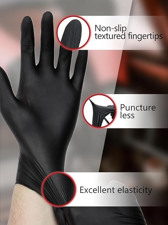 【Durable and Comfortable】Black gloves upgraded to 4 mil thickness—just right. Thin yet flexible, they provide ample dexterity for handling various tasks.