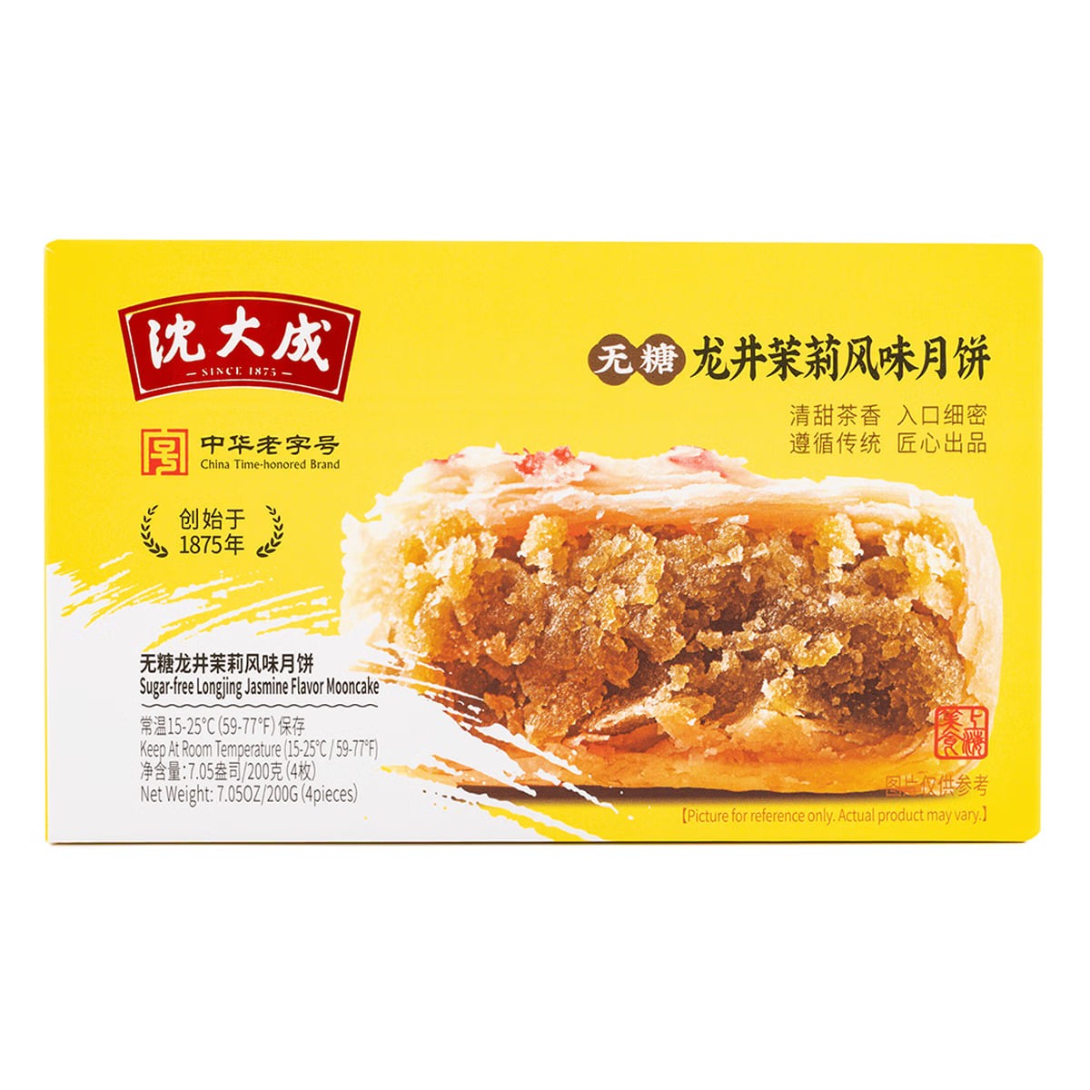 Shen Dacheng (Shanghai Time-Honored Brand) Su-Style Longjing Jasmine Flavored Mooncakes, Sugar-Free, Fine Sand Shortbread, a Mid-Autumn Festival Shanghai Specialty, 4 pieces, 200g. Suitable for those with diabetes.